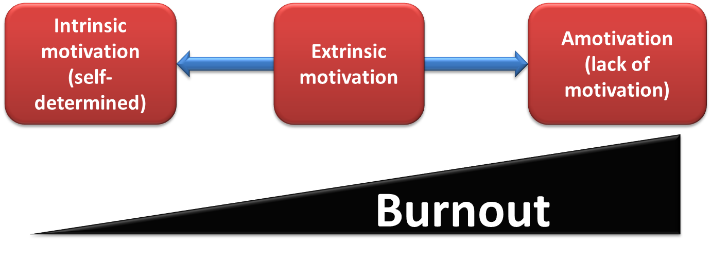 Researchers have suggested that burnout is linked motivation, and one study in particular2 found that athletes who were more intrinsically motivated had lower burnout scores, while athletes with a lack of motivation (the opposite end of the scale) had higher burnout scores.
